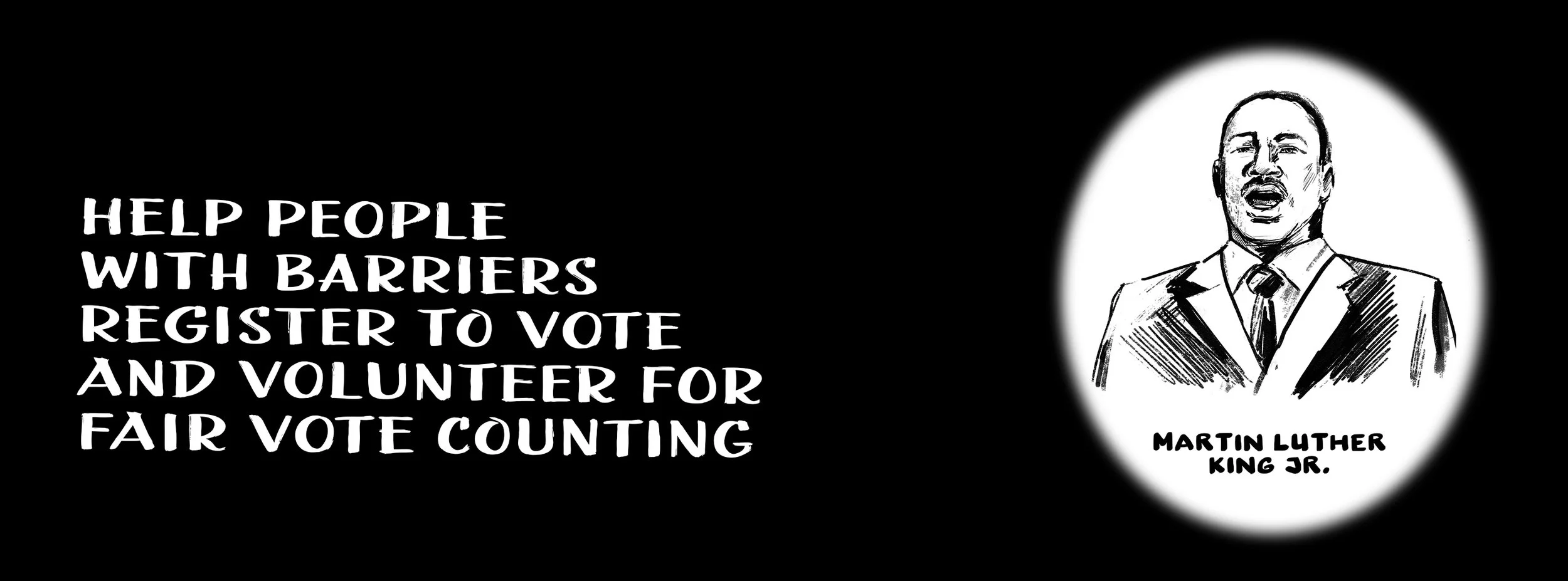 Dr. Martin Luther King spent his adult life fighting without violence for people of color to have equal access to vote in elections in the US. He did so alongside many other brave leaders, like Ralph Abernathy, Ella Baker, John Lewis, Diane Nash, and A. Philip Randolph. The movement culminated in President Lyndon Johnson signing the 1965 Civil Rights Act into law.